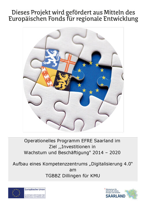 Am TGBBZ in Dillingen wurde ein „Kompetenzzentrum Digitalisierung 4.0 für KMU“ eingerichtet. Dieses Projekt wurde durch EFRE-Mittel gefördert.