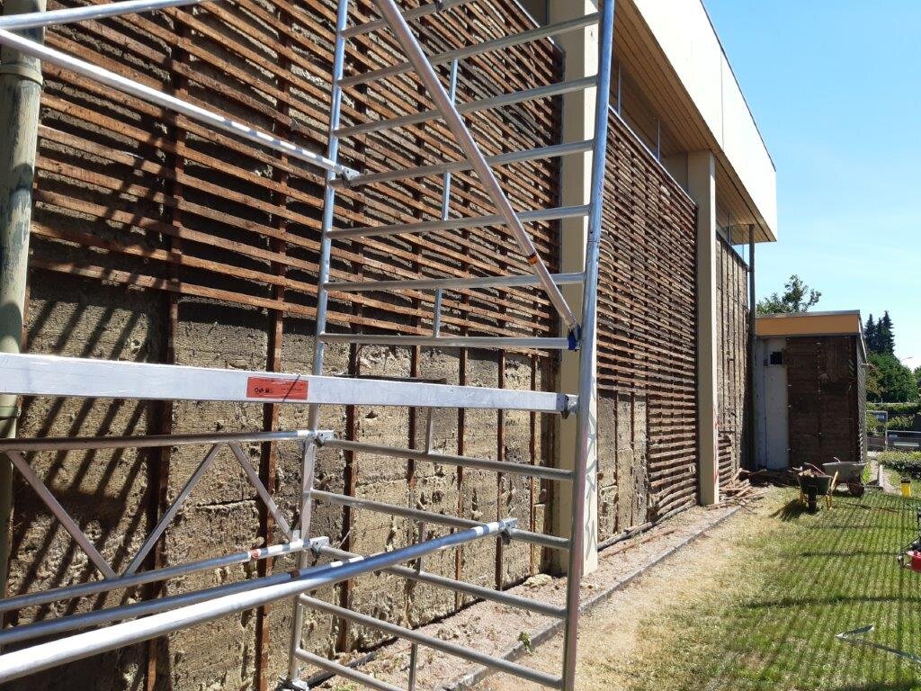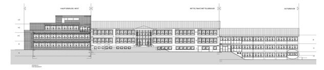 Die Fassade an der Südseite sowie des Fensters an der Nordseite der vorhandenen Gymnastikhalle, die zu einem Musiksaal umgebaut werden soll musste erneuert werden, da sie nicht mehr den aktuellen energetischen Standards entsprachen, wodurch erhebliche Heizenergieverluste entstanden. Daher wurden an der Südseite eine neue Fensteranlage in hochgedämmter Ausführung eingebaut.