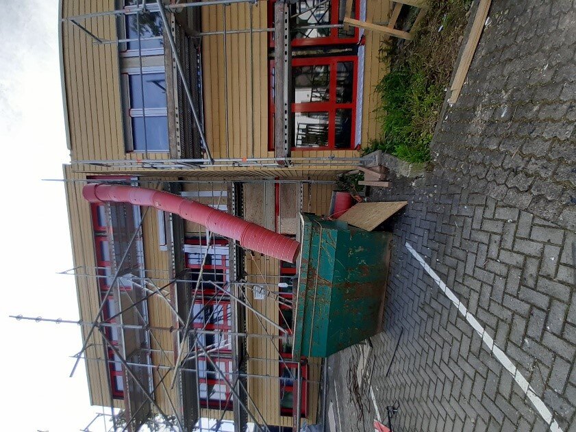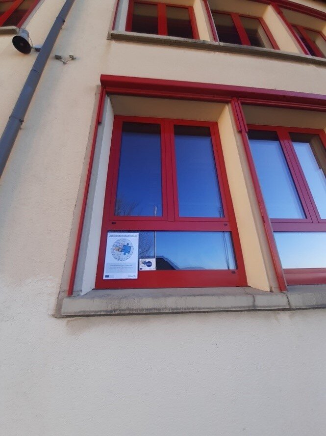 Die Sanierung wurde in den Herbstferien 2015 umgesetzt. 46 Fenster und eine Eingangstür wurden demontiert und durch neue Alufenster und eine neue Eingangstür ersetzt. Fensterbänke und eine seitliche Blechverkleidung wurden montiert.