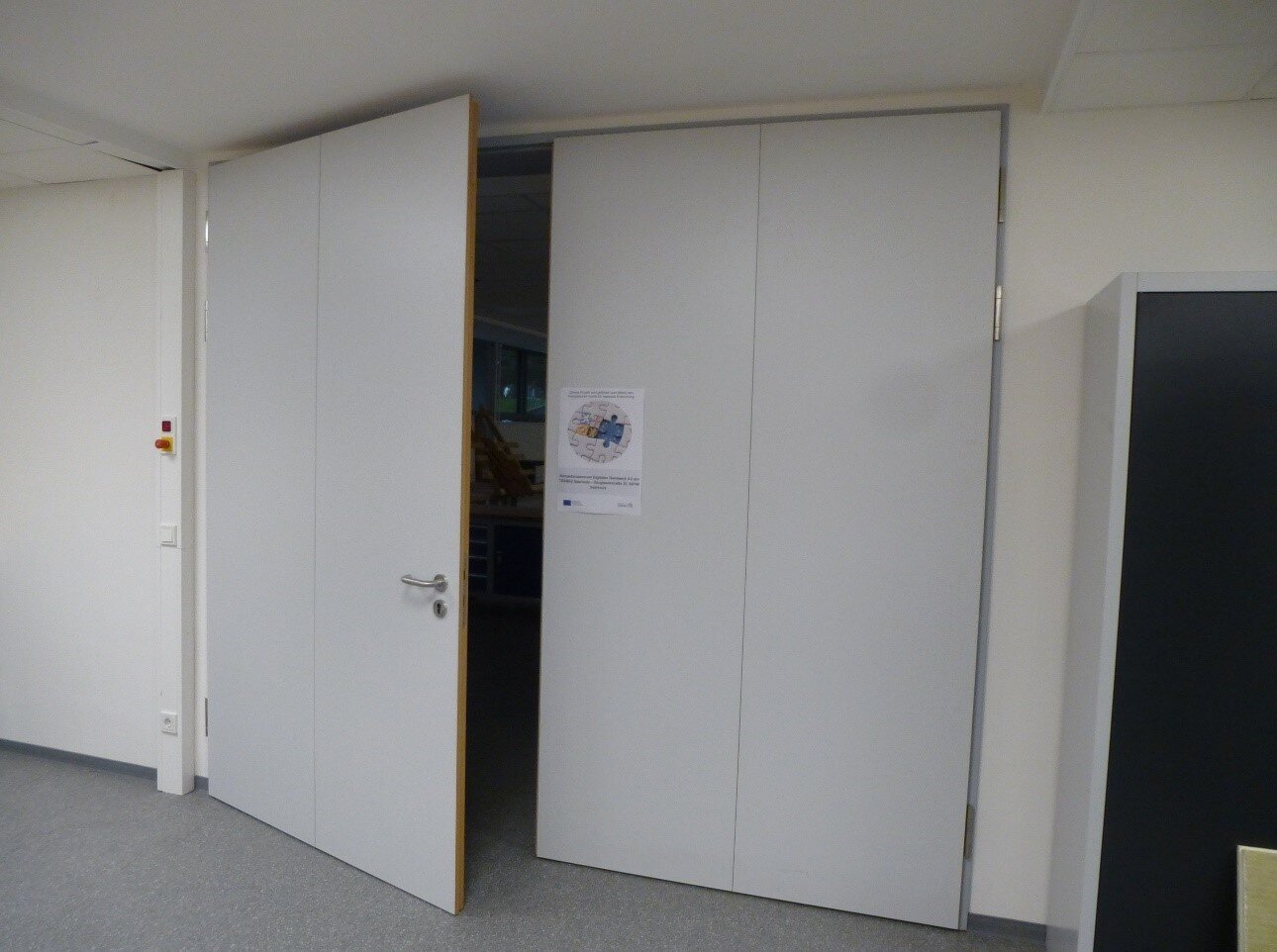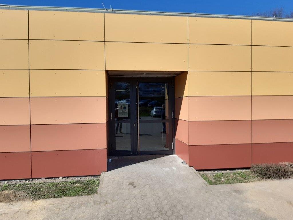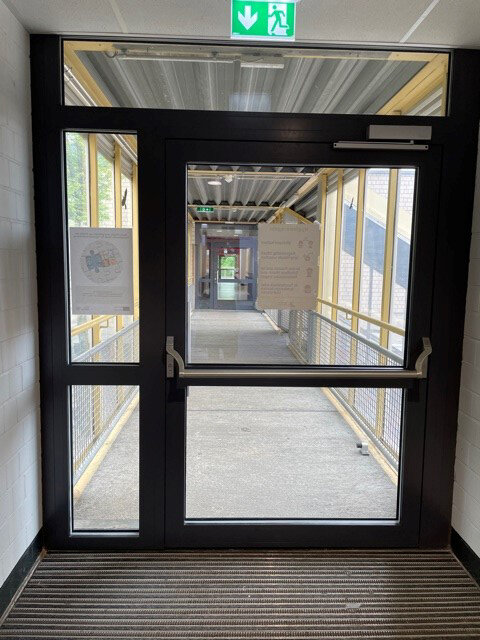 An der GemS Saarlouis 1 „In den Fliesen“ wurden 2020 Eingangstüren zu den Türmen 1-5 erneuert. Vorhandene 2-flügelige Aluminiumtüren wurden durch 1-flügelige Aluminiumtüren mit Seitenteil ersetzt. Die neuen Türen erfüllen nun die aktuellen Anforderungen an den Wärmeschutz und sind als Fluchttüren mit Panikbeschlag hergestellt.