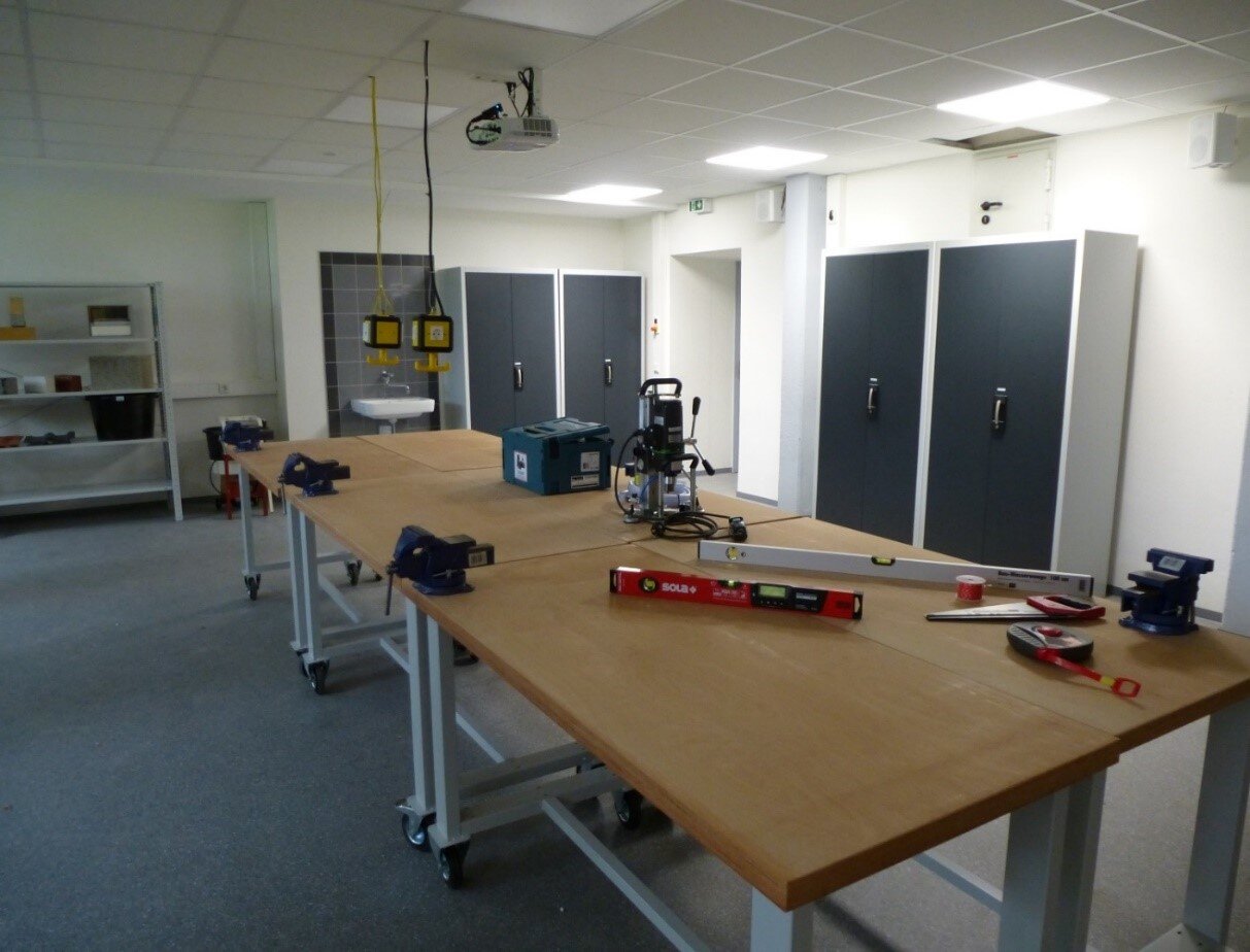 Um den Schülern diese neuen Technologien zu vermitteln bedarf es natürlich auch der Ausstattung. Denn nur dann ist es möglich diese Kompetenzen zu lehren, lernen und auch auszutesten, damit diese in den Firmen und auf den Baustellen sicher angewendet werden können.
