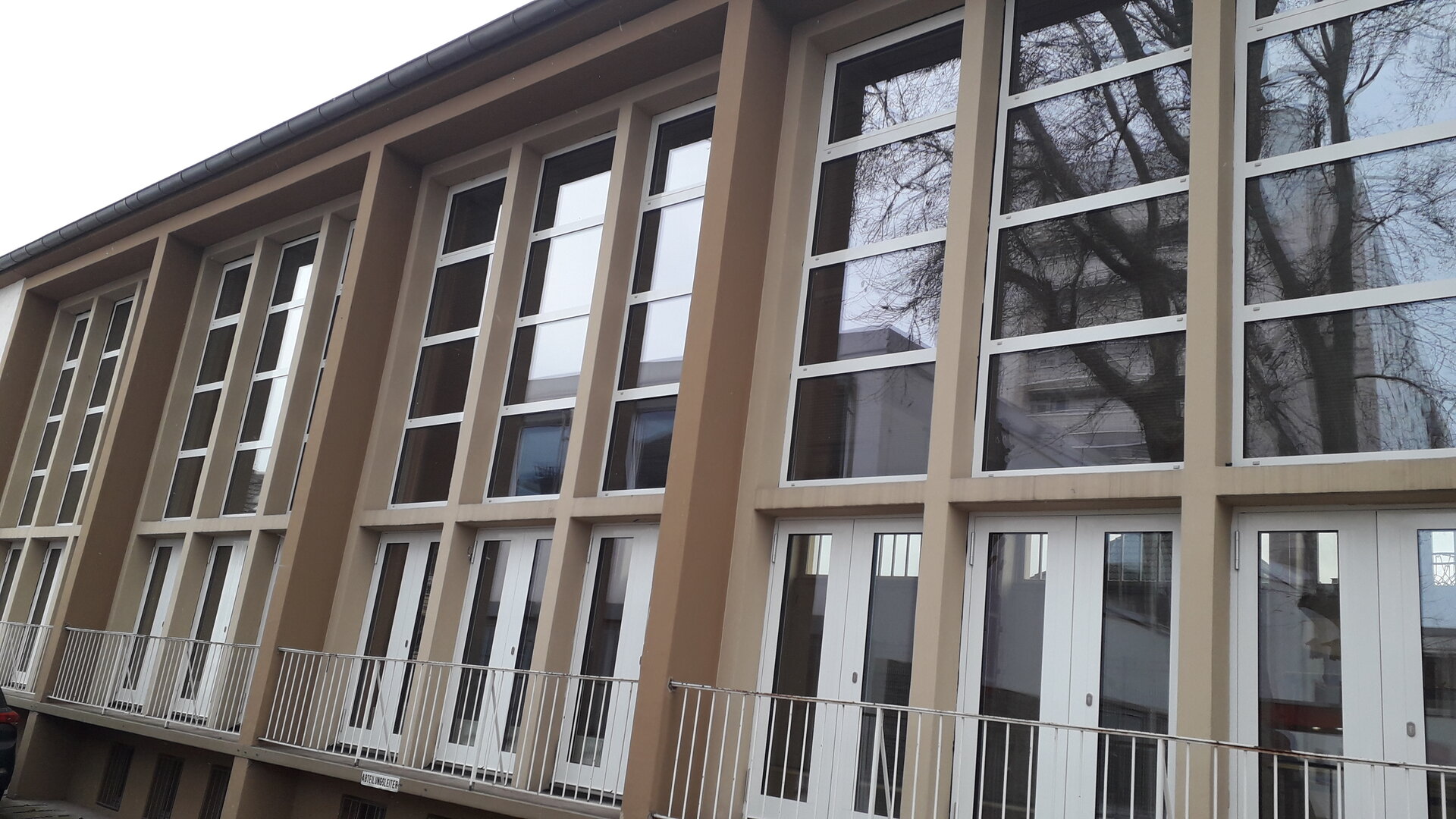 Das Gebäude und die Fenster waren über 40 Jahre alt. Die vorhandenen Schiebefenster waren teilweise nicht mehr funktionsfähig und energetisch nicht auf dem neuesten Stand. Deshalb mussten die Fenster und der außen angebrachte Sonnenschutz in mehreren Bauabschnitten erneuert werden.