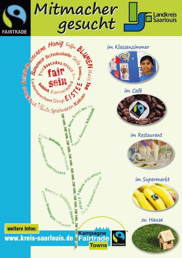 Der Landkreis Saarlouis ist seit September 2017 offizieller Fairtrade-Landkreis. In einem offenen Netzwerk haben sich viele Mitstreiter zusammengeschlossen, um den Fairen Handel im Landkreis bekannter und attraktiver zu machen. Einzelhändler führen faire Produkte im Verkauf, in Bars, Bistros, Hotelbetrieben und Restaurants finden sich fair gehandelte Waren und auch Vereine, Kirchenorganisationen und Schulen setzen sich intensiv mit dem Thema auseinander und treiben den Fairen Handel im Landkreis voran.