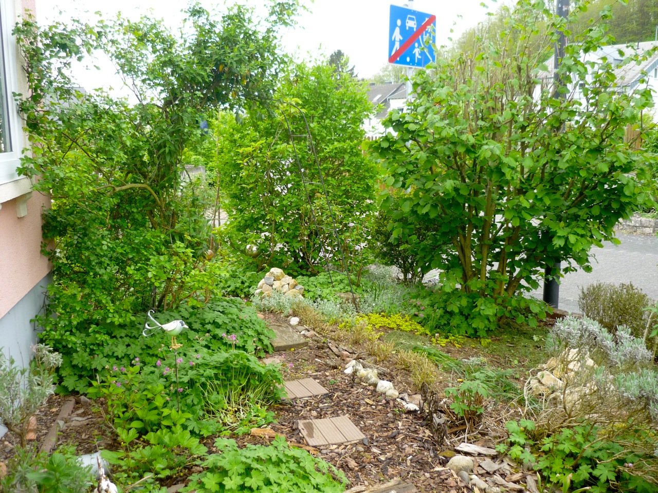 Annette Schröder hat sich einen naturnahen und nachbarschaftlichen Vorgarten geschaffen. Sie hat sich damit den zweiten Platz gesichert. Dieser Vorgarten ist bienenfreundlich, nützlich, duftend. Es gibt einen Kräutergarten mit Salbei, Rosmarin, Oregano, Liebstöckel, Lavendel, Melisse, Fenchel u. v. m. allerdings kombiniert mit Blumen, damit immer etwas blüht und für die Nahrung der Bienen sorgt. Der umgebene Zaun hat offene Stellen für Igel und Kleintier.