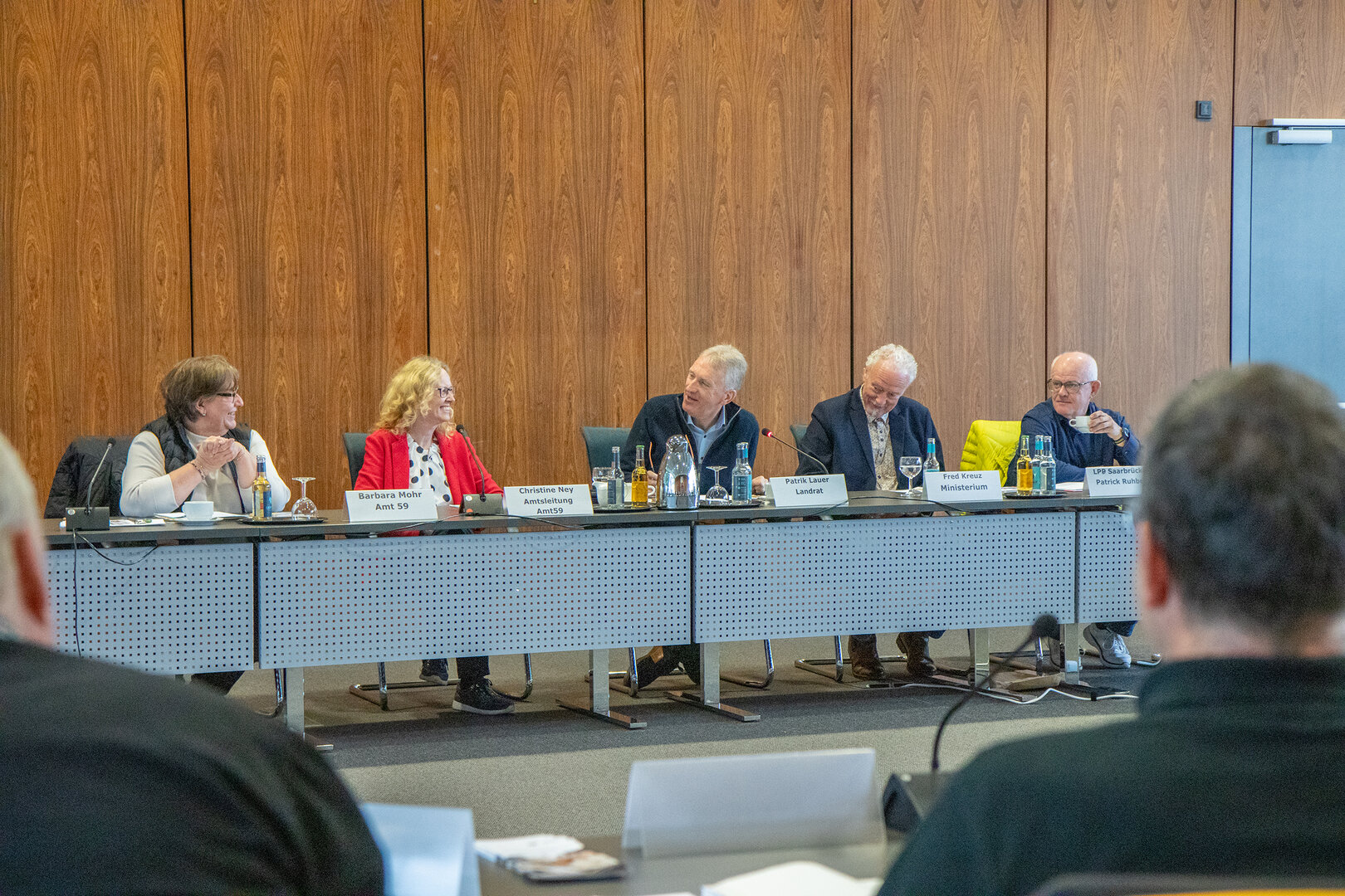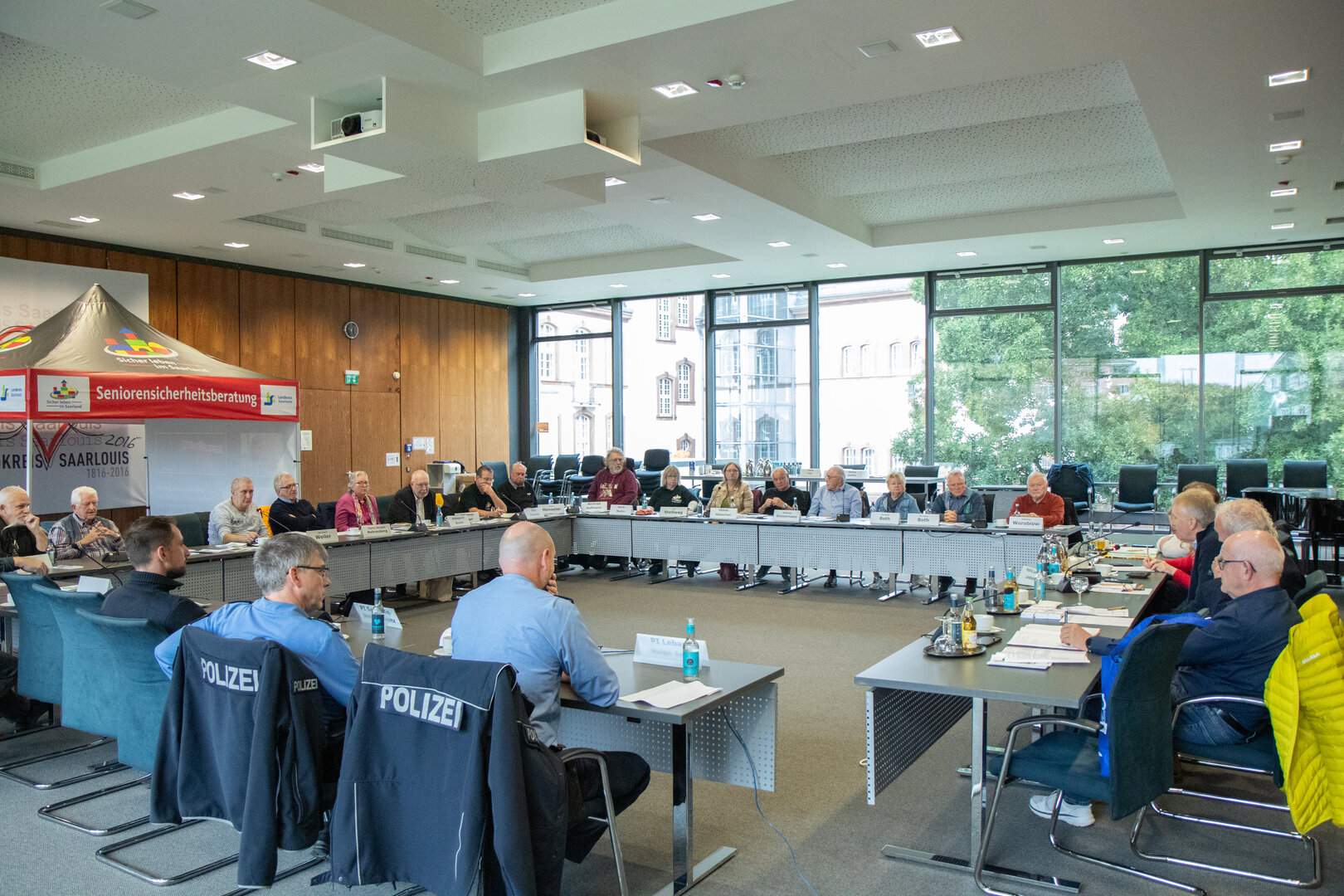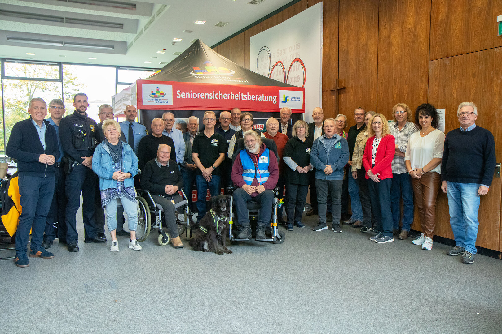SSB1Die Seniorensicherheitsberaterinnen und -berater im Landkreis Saarlouis mit Landrat Patrik Lauer (ganz links) und den zuständigen Ansprechpersonen aus der Kreis- und Landesverwaltung sowie Vertretern der Polizei. Foto: Landkreis Saarlouis - David Nicola Schmitt Die Seniorensicherheitsberaterinnen und -berater im Kreis haben sich kürzlich zum alljährlichen Austausch im Großen Sitzungssaal des Saarlouiser Landratsamtes versammelt. Gemeinsam mit Landrat Patrik Lauer, den zuständigen Ansprechpersonen aus der Kreis- und Landesverwaltung sowie Vertretern der Polizei ging es dabei um aktuelle, sicherheitsrelevante Themen aus dem Saarland und den Kommunen. Im Zuge der Veranstaltung wurden außerdem sechs neue Ehrenamtliche sowie neues Equipment für die Arbeit vor Ort vorgestellt.