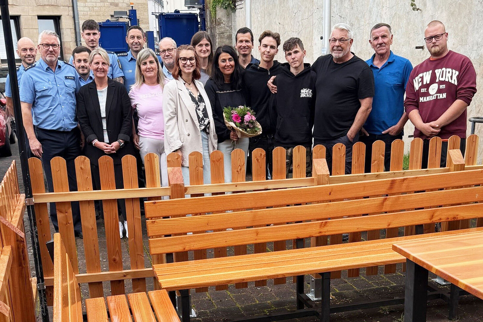 Zwei Tische und fünf Bänke aus Holz, gebaut in der Jugendwerkstatt in Saarlouis, zieren seit kurzem den Innenhof der Polizeiinspektion (PI) Saarlouis und dienen dort als möglicher Pausen-Treffpunkt für die Beamtinnen und Beamten. Das Mobiliar wurde kürzlich an Ort und Stelle offiziell übergeben, eingebettet in ein kleines Grillfest als Zeichen der Wertschätzung.