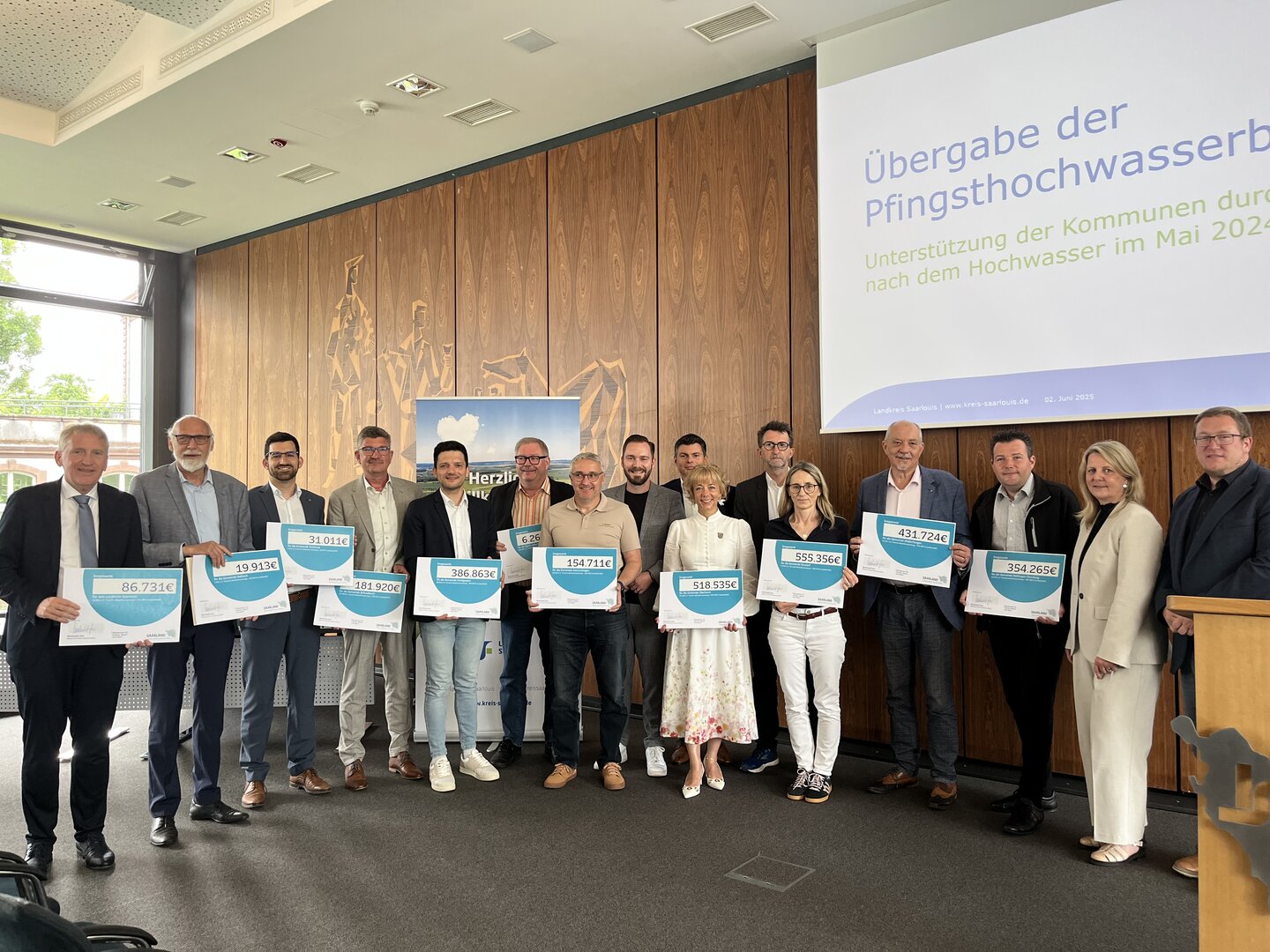 Scheckübergabe SaarlouisFoto: MIBS/J. Klos. Hochwasser-Hilfen in Höhe von insgesamt 43 Millionen für alle betroffenen saarländischen Kommunen und Landkreise