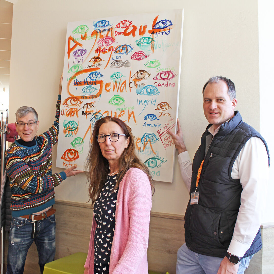 Gestartet ist die gemeinsame Aktion im November des vergangenen Jahres: Am Internationalen Tag gegen Gewalt an Frauen richtete das Frauennetzwerk einen Infostand im Globus Saarlouis ein, um das Thema sichtbar zu machen. Mike Mathes beteiligte sich an der Aktion und schuf zeitgleich ein Kunstwerk, bei dem Passantinnen und Passanten eingeladen waren, Gesicht zu zeigen. Entstanden ist ein Acrylgemälde auf Leinwand, auf dem viele Teilnehmende ihre Augen und Unterschriften verewigt haben – als Zeichen für ihre Solidarität mit den Opfern.