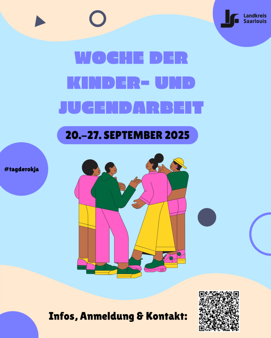Der Landkreis Saarlouis beteiligt sich vom 20. bis 27. September 2025 mit verschiedenen Aktionen und Veranstaltungen an der bundesweiten Kampagne „Tag der offenen Kinder- und Jugendarbeit“. Mit dem Start am Weltkindertag am 20. September feiert der Kreis eine Woche der Kinder- und Jugendarbeit und setzt damit ein Zeichen für die große Bedeutung dieser Angebote. Hintergrund ist der bundesweite Aktionstag „Tag der offenen Kinder- und Jugendarbeit“, zu dem die Bundesarbeitsgemeinschaft Offene Kinder- und Jugendarbeit e. V. am 26. September aufruft. So lädt die Freie Kunstschule Saarlouis am Dienstag, 23. September 2025, zum Workshop „Drum Circle Groove – Lautstark für Kinderrechte“ ein. Am Freitag, 26. September 2025, findet von 16 bis 18 Uhr das Stadtjugendforum in Saarlouis statt. In Nalbach steht am Samstag, 27. September 2025, von 10 bis 12 Uhr das Thema Fairness im Mittelpunkt: „Voll ungerecht – Geschichten und Aktionen rund um Fairness und Gerechtigkeit“ (für Kinder ab 6 Jahre).