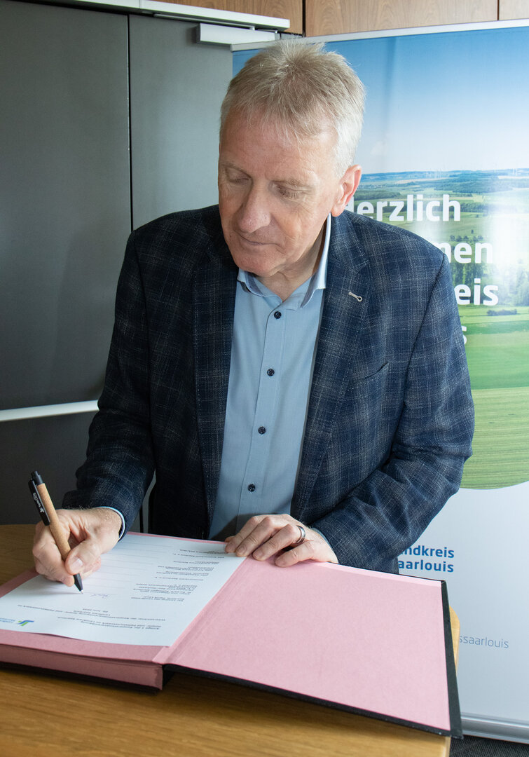 Landrat Patrik Lauer bei der Unterzeichnung der Kooperationsvereinbarung. (Foto: Landkreis Saarlouis/Ulrike Paulmann)