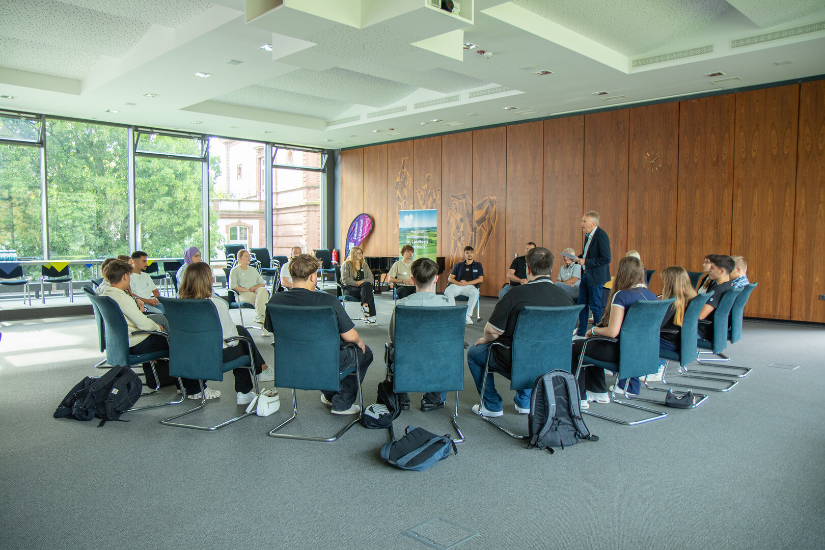 Landrat Patrik Lauer durfte kürzlich den neuen Jahrgang an Auszubildenden und Fachoberschulpraktikantinnen und -praktikanten im Saarlouiser Landratsamt willkommen heißen. Auf ihren ersten Schritten in der Landkreisverwaltung wurden sie von den beiden Personalratsvorsitzenden, Mitarbeitenden des Personalamtes und der Jugend- und Auszubildendenvertretung begleitet. Außerdem lernten sie ihre Azubi-Patinnen und -Paten kennen, die ihnen während ihrer Zeit beim Landkreis mit Rat und Tat zur Seite stehen werden.