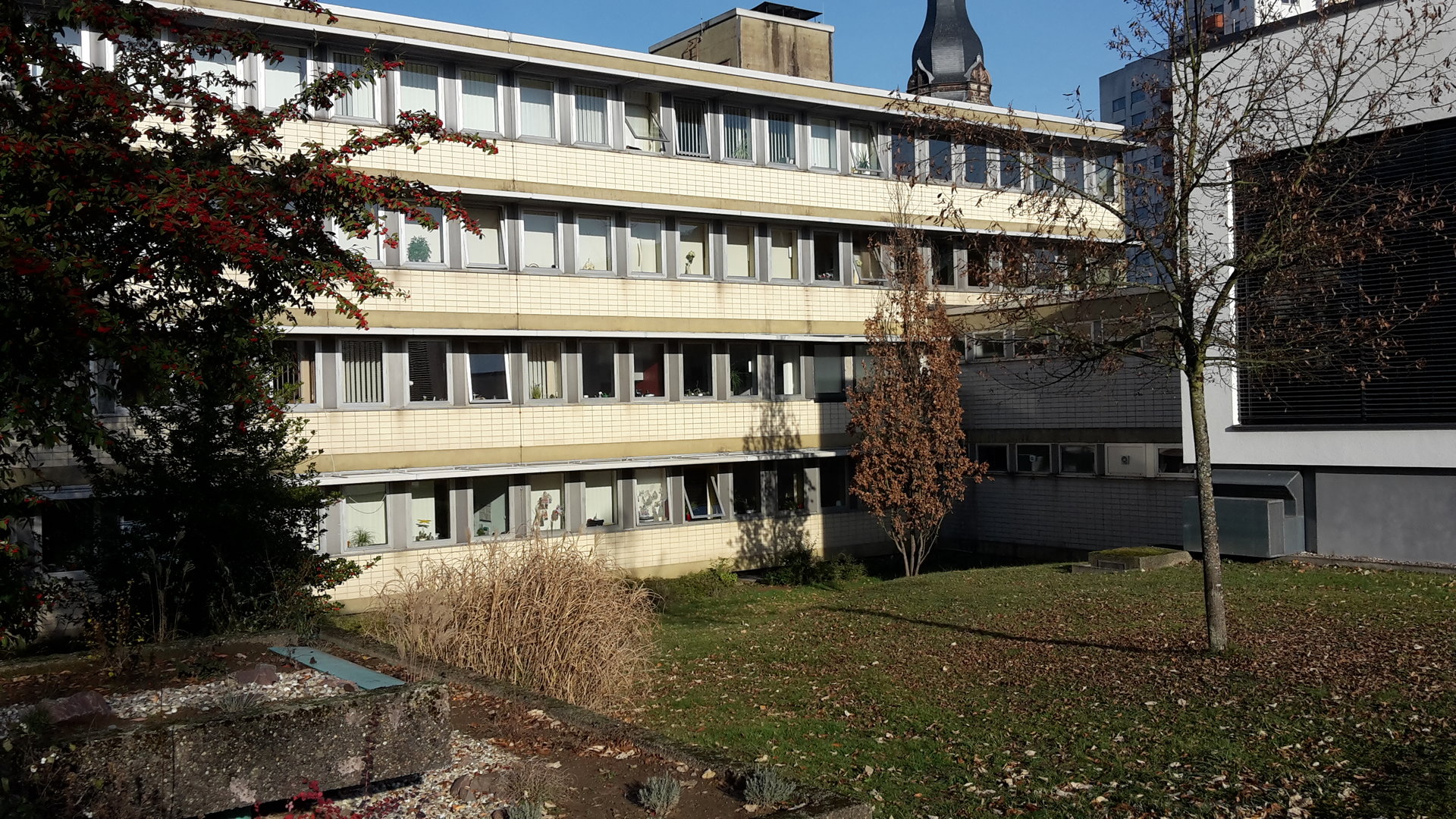 Das Gebäude und die Fenster waren über 40 Jahre alt. Die vorhandenen Schiebefenster waren teilweise nicht mehr funktionsfähig und energetisch nicht auf dem neuesten Stand. Deshalb mussten die Fenster und der außen angebrachte Sonnenschutz in mehreren Bauabschnitten erneuert werden.