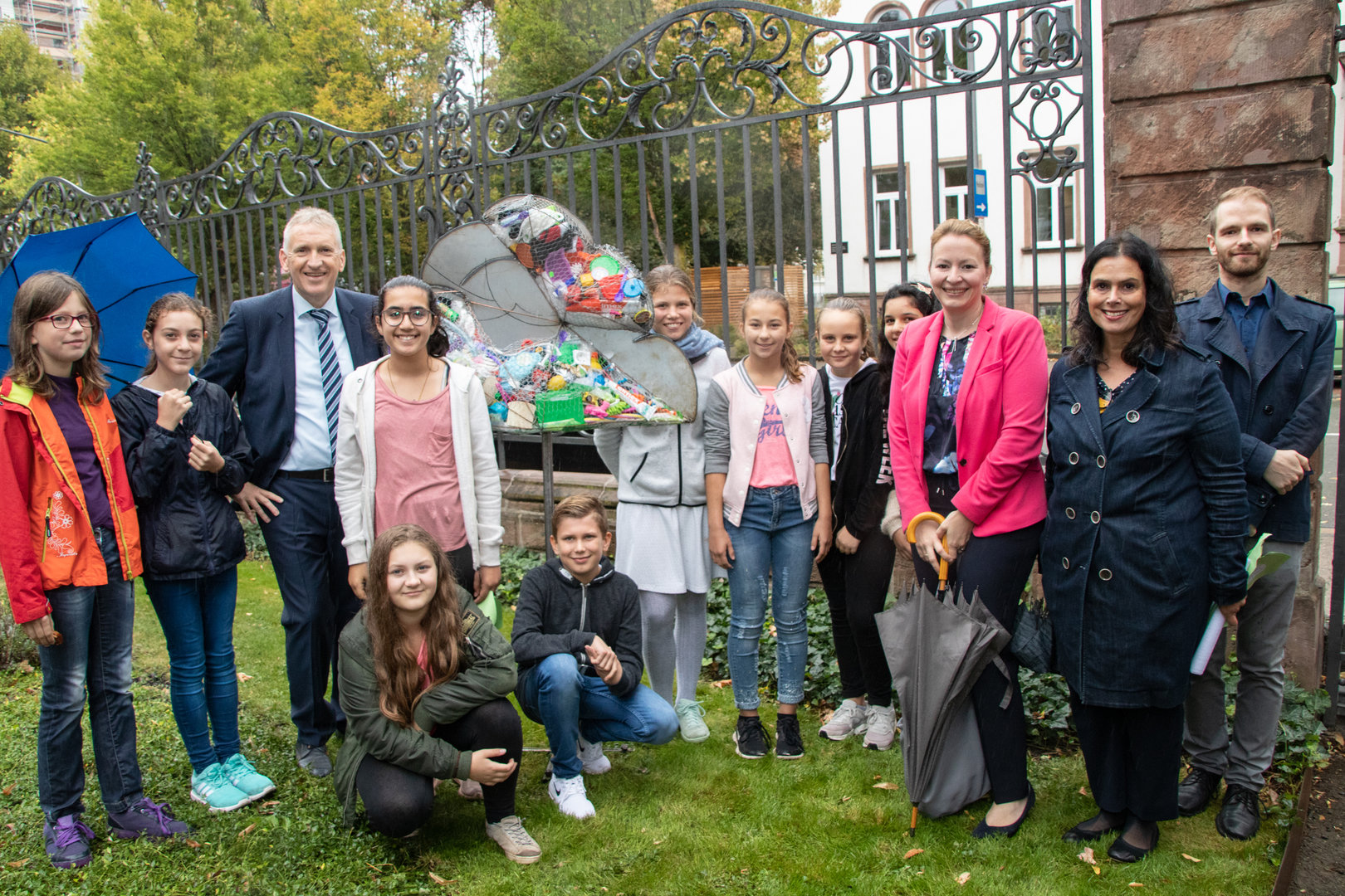 IMG_6224_kleinm Im Rahmen des Aktionsjahres „Esskultur und Nachhaltigkeit“ wurde das neue Projekt „Konsum und Plastik“ vor dem Kreisständehaus im Zeitgarten Meilensteine am Landratsamt in Saarlouis feierlich eröffnet. Schüler aus fünf Saarlouiser Kreisschulen: Anne-Frank-Förderschule, Gemeinschaftsschule in den Fliesen, Gymnasium am Stadtgarten, Max-Planck-Gymnasium Saarlouis und das Robert-Schuman-Gymnasium Saarlouis, haben sich im Aktionsjahr zusammen mit der Schulentwicklerin des Landkreises, Natalie Sadik, und ihren Lehrern mit dem Thema Konsum, Plastik und Konsequenzen für das gesamte Ökosystem auseinandergesetzt und die verschiedenen Skulpturen mit weggeworfenem Plastikmüll gestaltet. Die insgesamt 7 Figuren wie Stern, Wolke, Fisch oder Mensch sollen den Kreislauf unseres Plastikkonsums darstellen. Die Idee zu den verschiedenen Figuren kam von Schulentwicklungsplanerin Natalie Sadik, hergestellt wurden sie von Mitarbeitern aus dem Stahlwerk in Bous.