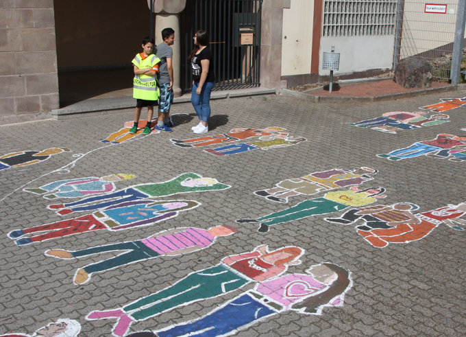 Wichtig hierbei war für Schulentwicklungsplanerin Natalie Sadik, alle beteiligten Gruppen, natürlich insbesondere die Schülerinnen und Schüler bereits zu Beginn der Planung mit ins Boot zu nehmen. Unterstützt von Sadik entwickelten Schüler, Lehrer, Anwohner und die Ortspolizeibehörde gemeinsam in einer Zukunftswerkstatt das Projekt „StraßenART – Mobilität trifft Kunst“. Lebensgroße Schülerfiguren aus Metall, unter Anleitung von Lioba Amann entworfen, machen jetzt im gesamten Umfeld auf die Schule aufmerksam. Zudem wurde der Schuleingangsbereich als autofreie Zone künstlerisch gestaltet.