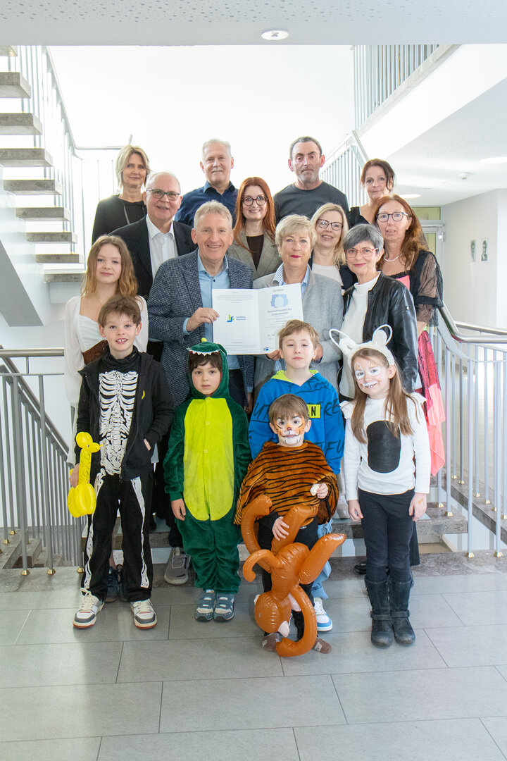 Und so war es kein Zufall, dass die Überreichung der Urkunde auf den diesjährigen „Tag der Landkreiskinder“ fiel. Am Faschingsdienstag durften insgesamt 70 Kinder mit in die Verwaltung kommen, um im Büro ihren Eltern über die Schulter zu schauen - und am Mittag bei Hüpfburg, Kinderschminken, Glücksrad, Bastelaktionen und Snacks im Großen Sitzungssaal der Kreisverwaltung noch ein bisschen Faasend feiern.